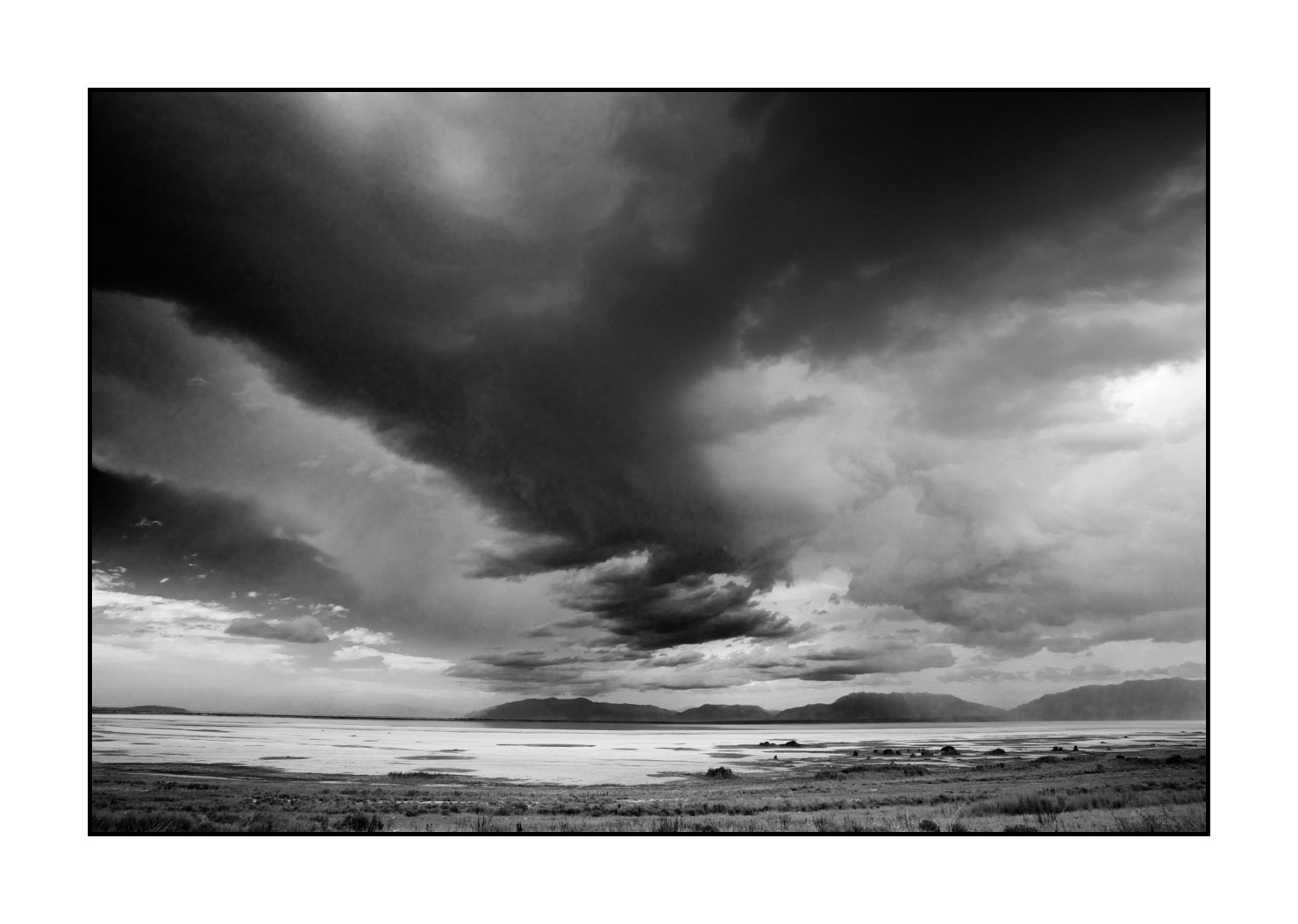 Landsape of Antelope Island in Black and White I: Museum Finish Dim in inches - Photo: 15 x 10. With frame: 16.2 x 11.2. / Dim in cm - Photo: 38 x 25.4. With frame: 41.5 x 28.5.