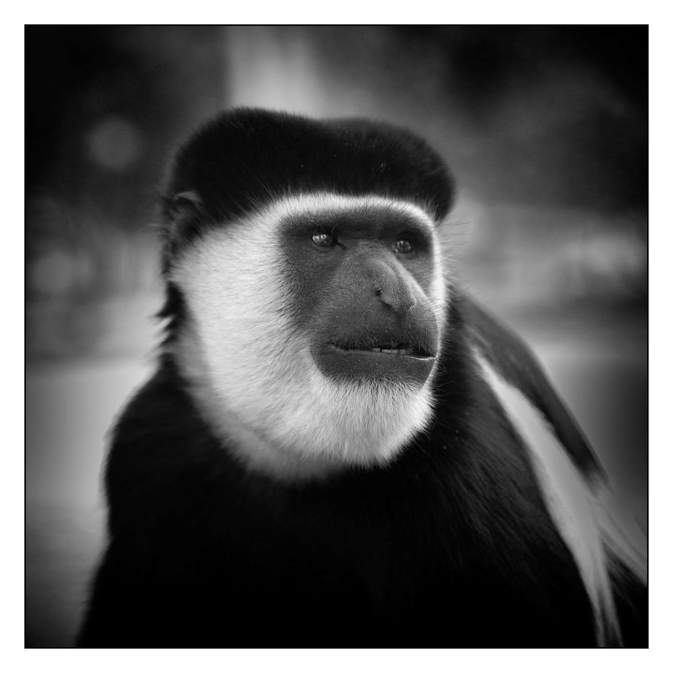 Anthropomorphism XIII - Mantled Guereza I: Museum Finish Dim in inches - photo: 20 x 20. With frame: 27.1 x 27.1 / Dim in cm - photo: 51 x 51. With frame: 69 x 69.