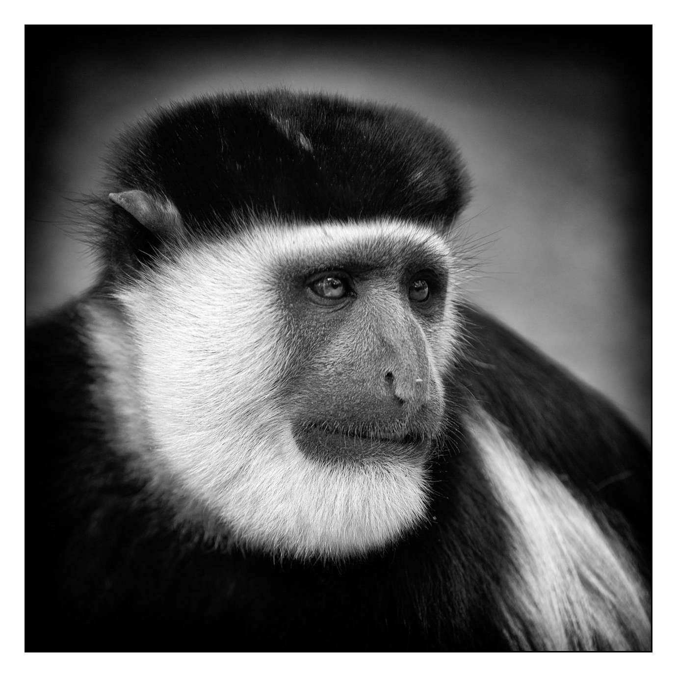 Anthropomorphism XIII - Mantled Guereza II: Museum Finish Dim in inches - photo: 10 x 10. With frame: 11.2 x 11.2 / Dim in cm - photo: 25.4 x 25.4. With frame: 28.5 x 28.5.