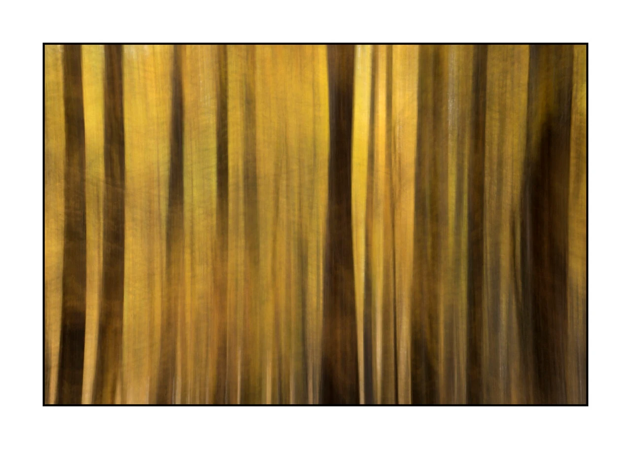 Autumn's Breath in the Larch Forest of the Clarée Valley VIII: Museum Finish Dim in inches - Photo: 34 x 22. With frame: 41.1 x 19.1. / Dim in cm - Photo: 86 x 56. With frame: 105.5 x 48.5.