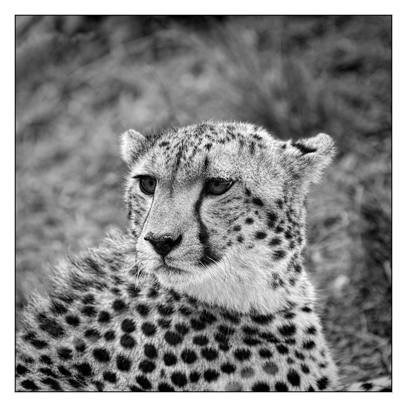 Cheetah III: Museum Finish Dim in inches - photo: 10 x 10. With frame: 11.2 x 11.2 / Dim in cm - photo: 25.4 x 25.4. With frame: 28.5 x 28.5.