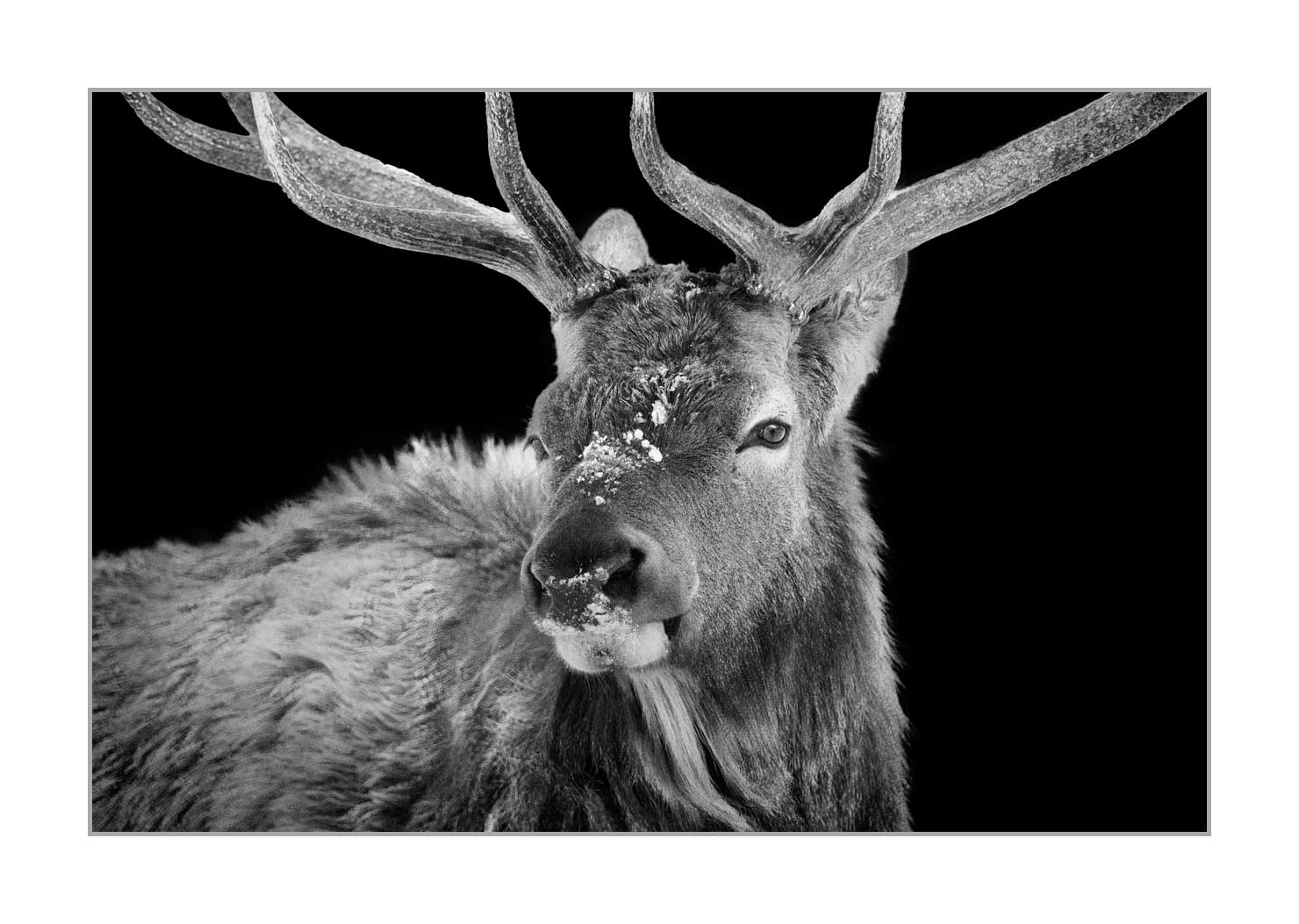 Elk in Back to Black IV: Museum Finish Dim in inches - Photo: 24 x 16. With frame: 25.2 x 17.2. / Dim in Cm - Photo: 61 x 41. With frame: 64 x 44.