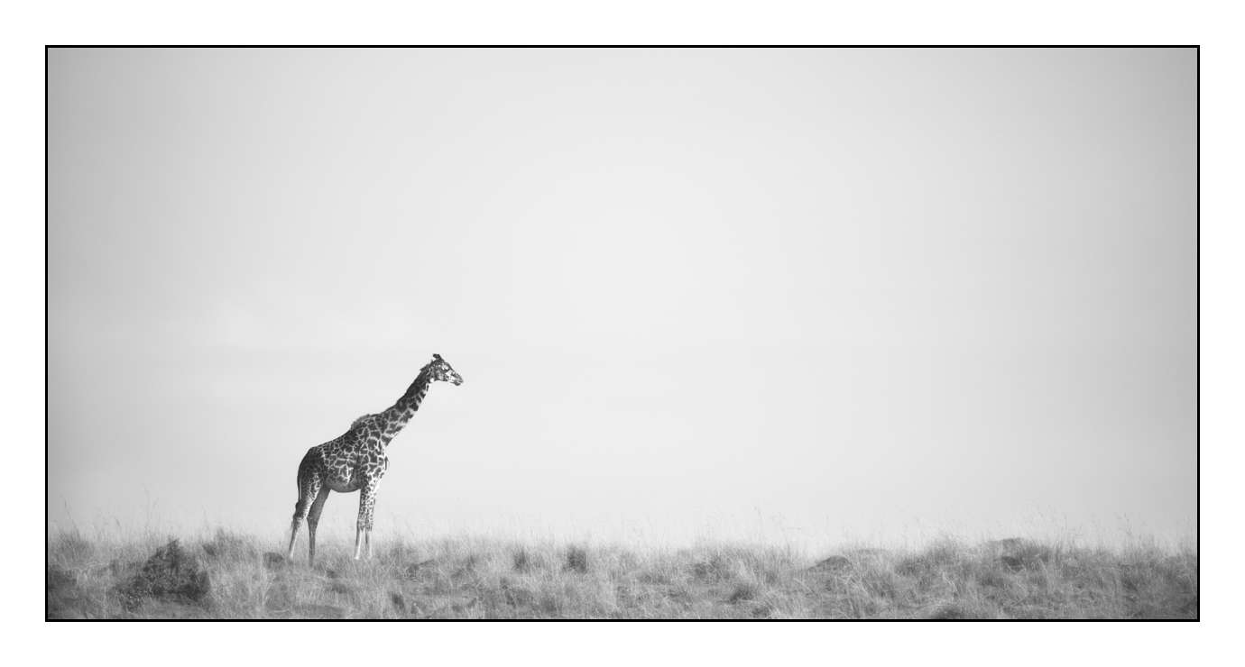 Giraffe III: Museum Finish Dim in inches - Photo: 16 x 8. With frame: 21.1 x 13.1. / Dim in cm - Photo: 41 x 21. With frame: 53.5 x 33.5.