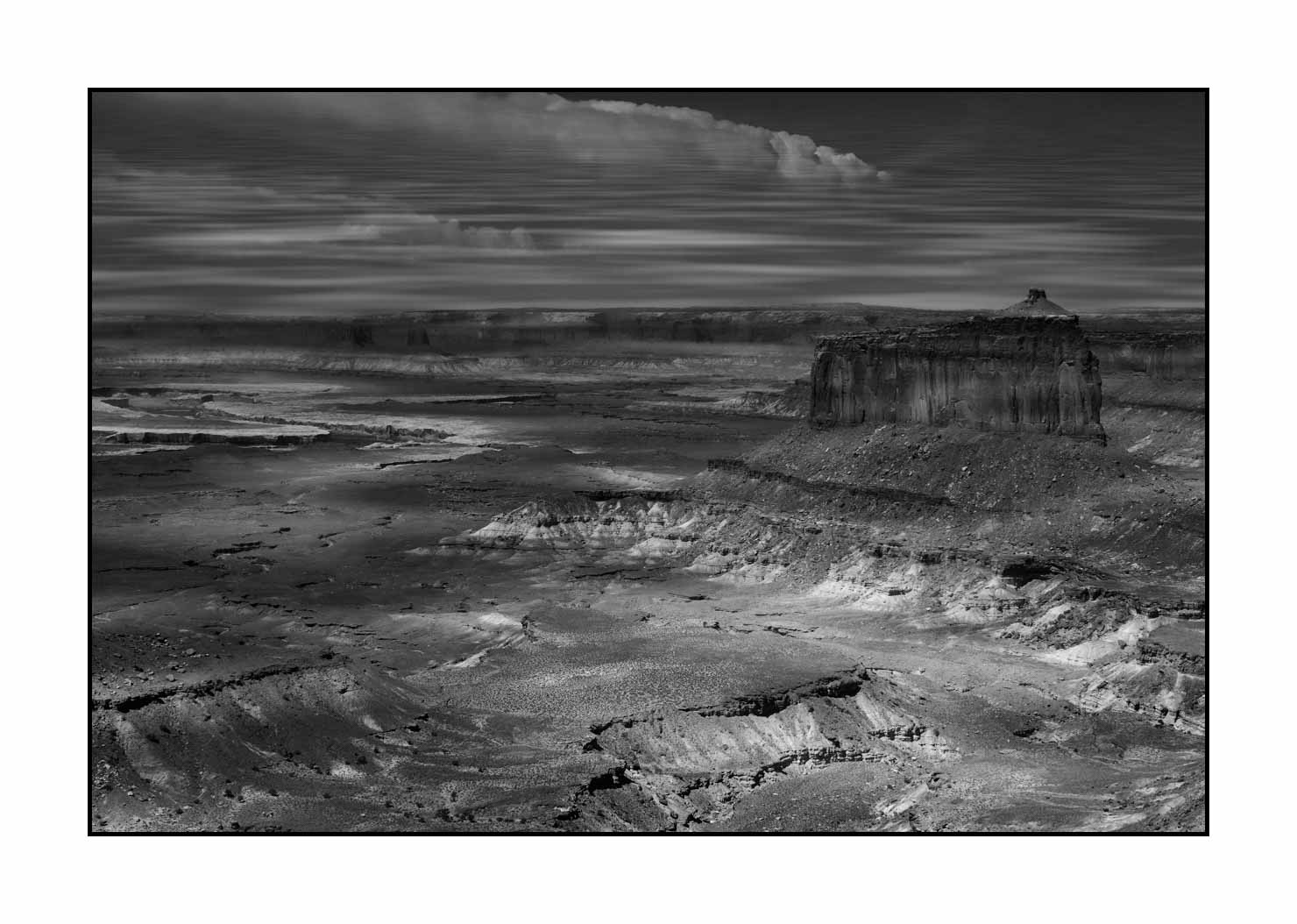 Landscape in Black and White of Island in the Sky II: Museum Finish Dim in inches - Photo: 15 x 10. With frame: 16.2 x 11.2. / Dim in cm - Photo: 38 x 25.4. With frame: 41.5 x 28.5.