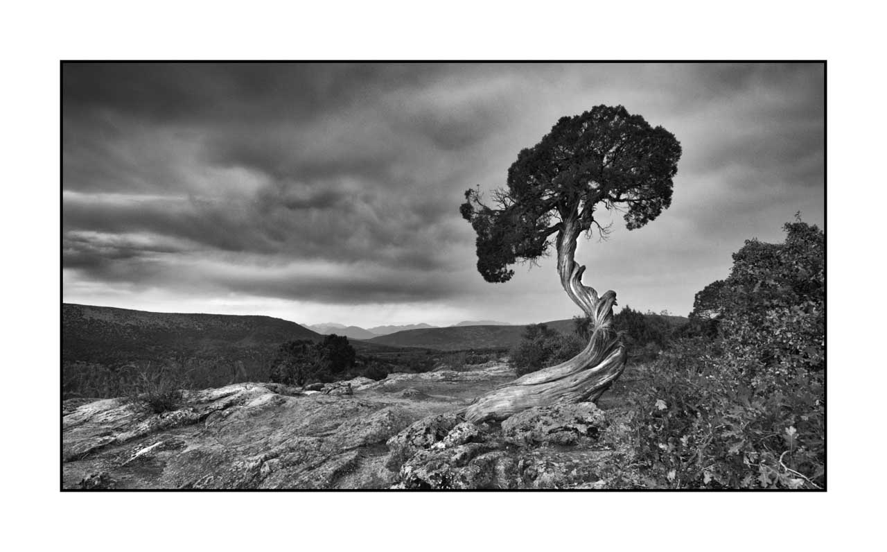 Juniper tree on the heights of Black Canyon - Landscape of Black Canyon of the Gunnison XVII: Museum Finish Dim in inches - Photo: 34 x 19. With frame: 35.2 x 20.2. / Dim in cm - Photo: 86 x 48. With frame: 89.5 x 51.5.