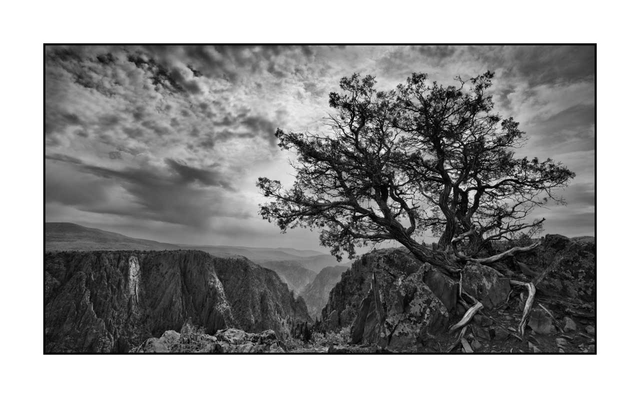 Tree on the heights of Black Canyon - Landscape of Black Canyon of the Gunnison XVIII: Museum Finish Dim in inches - Photo: 16 x 9. With frame: 17.2 x 10.2. / Dim in cm - Photo: 40.5 x 22. With frame: 44 x 26.