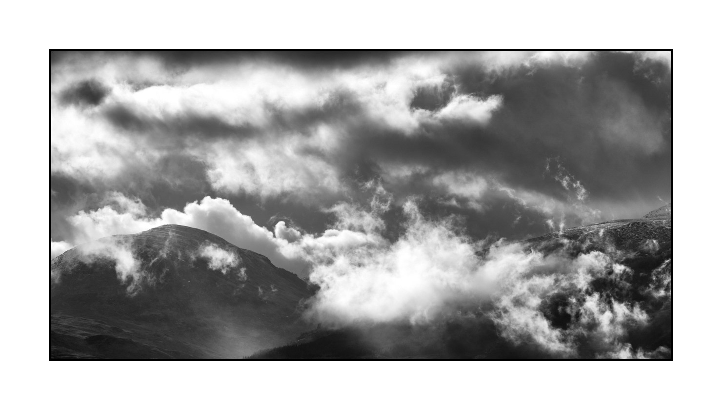 Landscape of Mid-Highlands in Scotland XXIII - Clouds in the Sky: Museum Finish Dim in inches - Photo: 24 x 12. With frame: 25.2 x 13.2. / Dim in cm - Photo: 61 x 30.5. With frame: 64 x 33.5.