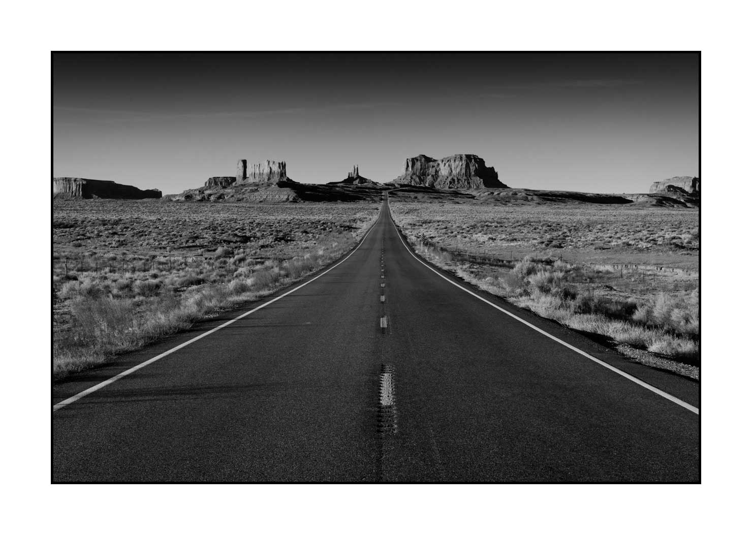 Landscape of Monument Valley in Black and White I: Museum Finish Dim in inches - Photo: 15 x 10. With frame: 16.2 x 11.2. / Dim in cm - Photo: 38 x 25.4. With frame: 41.5 x 28.5.