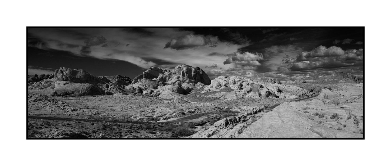 Landscape of Valley of Fire in Nevada in Black and White XV: Museum Finish Dim in inches - Photo: 36 x 12. With frame: 37.2 x 13.2. / Dim in cm - Photo: 91.4 x 30.5. With frame: 95 x 33.5.