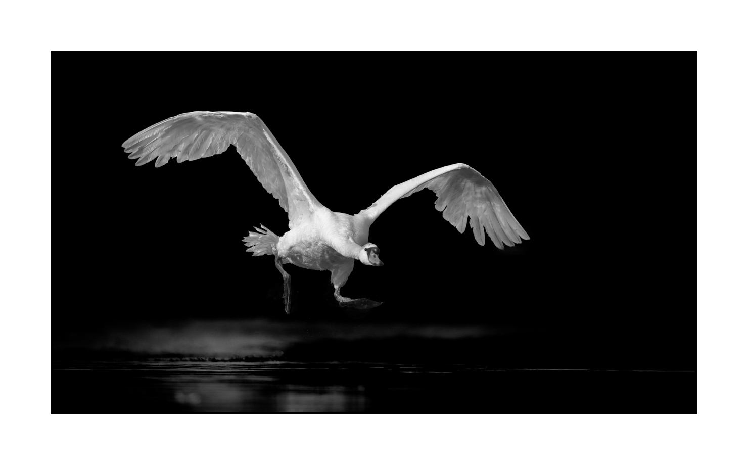 Mute Swan in Black and White II: Museum Finish Dim in inches - Photo: 16 x 9. With frame: 17.2 x 10.2. / Dim in cm - Photo: 40.5 x 22. With frame: 44 x 26.