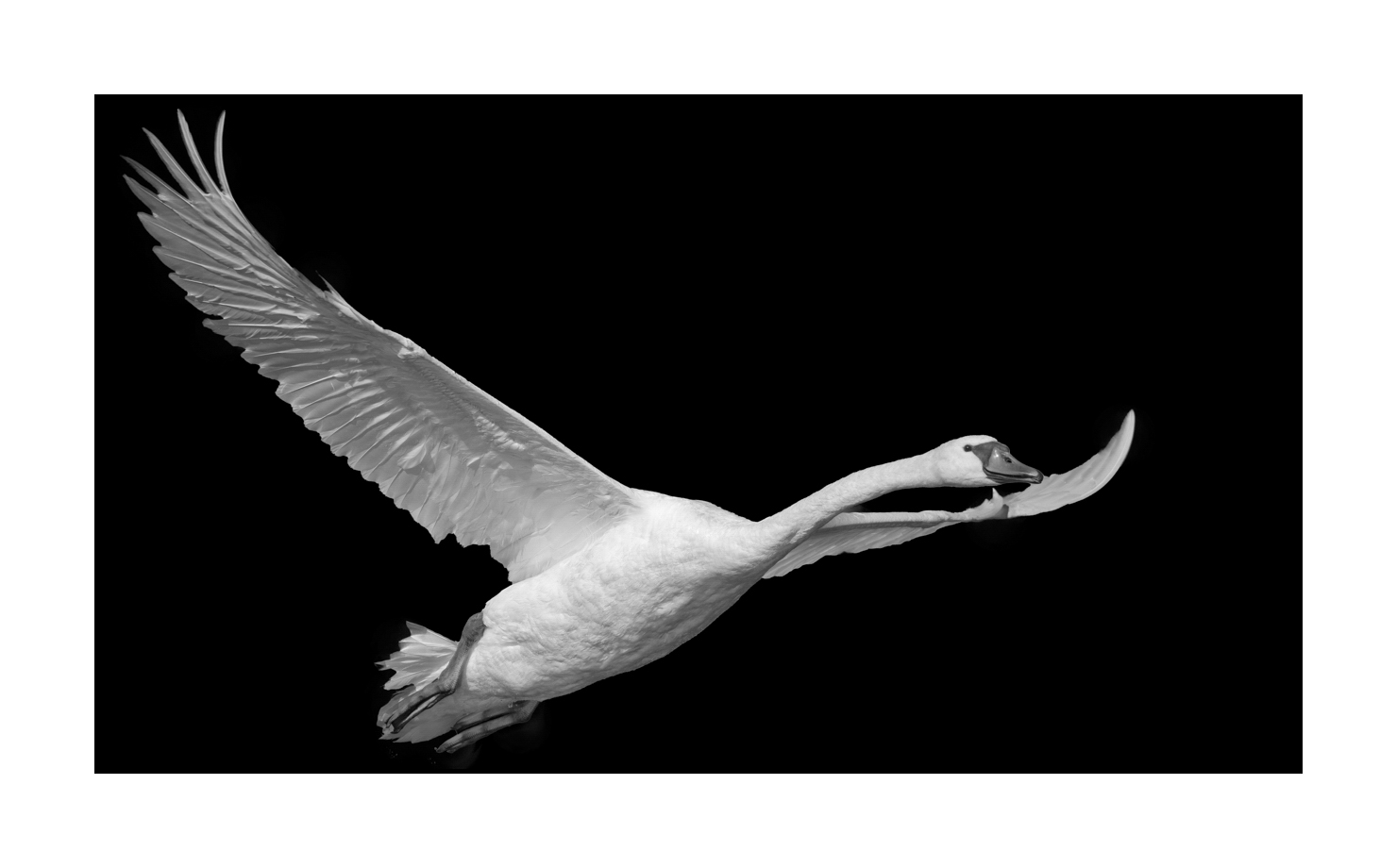 Mute Swan in Black and White III: Museum Finish Dim in inches - Photo: 32 x 18. With frame: 39.1 x 25.1./ Dim in cm: Photo: 81 x 46. With frame: 99.5 x 64.