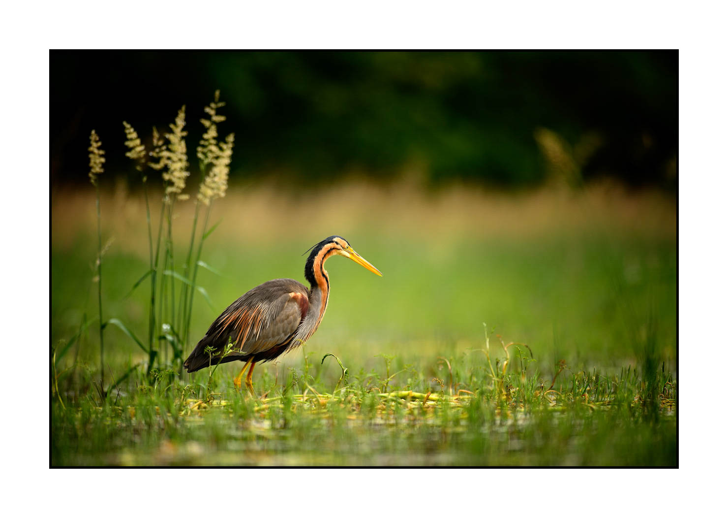 Purple heron II: Museum Finish Dim in inches - Photo: 15 x 10. With frame: 16.2 x 11.2. / Dim in cm - Photo: 38 x 25.4. With frame: 41.5 x 28.5.