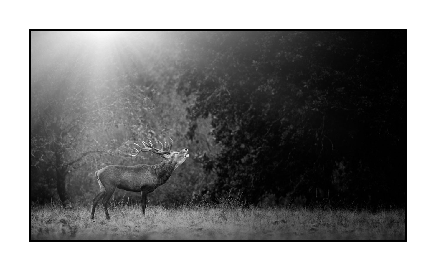 Red Deer Stag Bellowing II: Museum Finish Dim in inches - Photo: 16 x 9. With frame: 17.2 x 10.2. / Dim in cm - Photo: 40.5 x 22. With frame: 44 x 26.