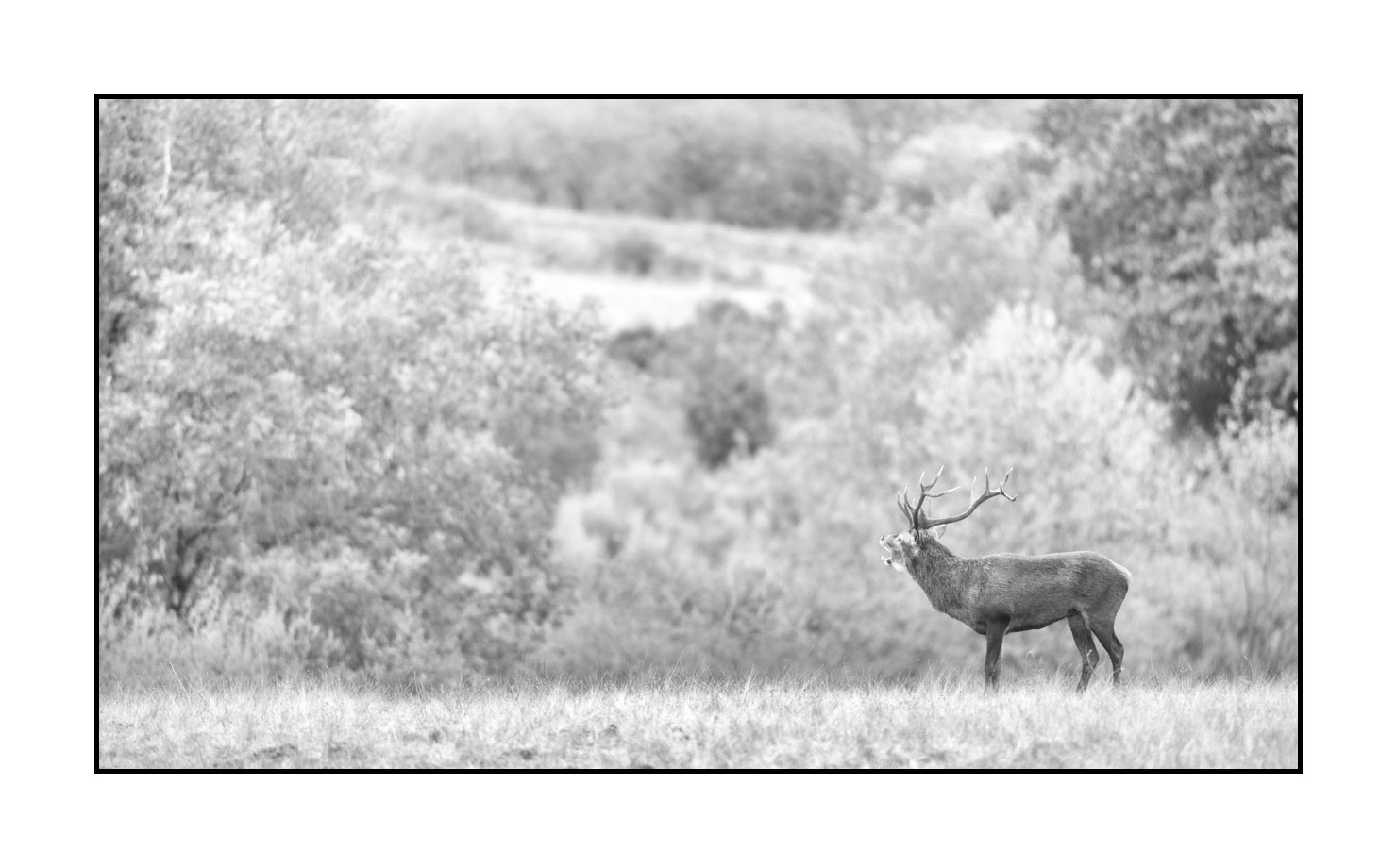 Red Deer Stag Bellowing XX: Museum Finish Dim in inches - Photo: 16 x 9. With frame: 17.2 x 10.2. / Dim in cm - Photo: 40.5 x 22. With frame: 44 x 26.