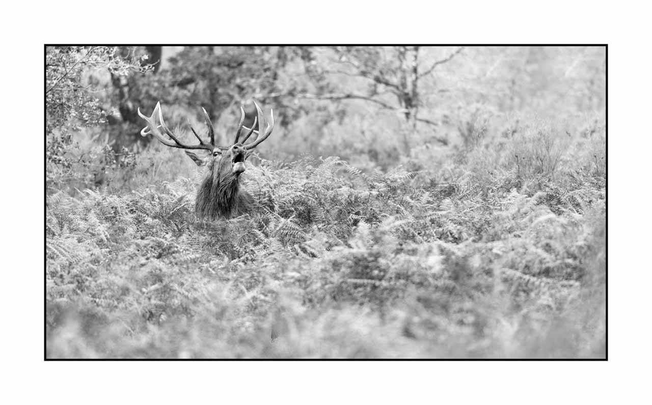 Red Deer Stag Bellowing XXVI: Museum Finish Dim in inches - Photo: 16 x 9. With frame: 17.2 x 10.2. / Dim in cm - Photo: 40.5 x 22. With frame: 44 x 26.