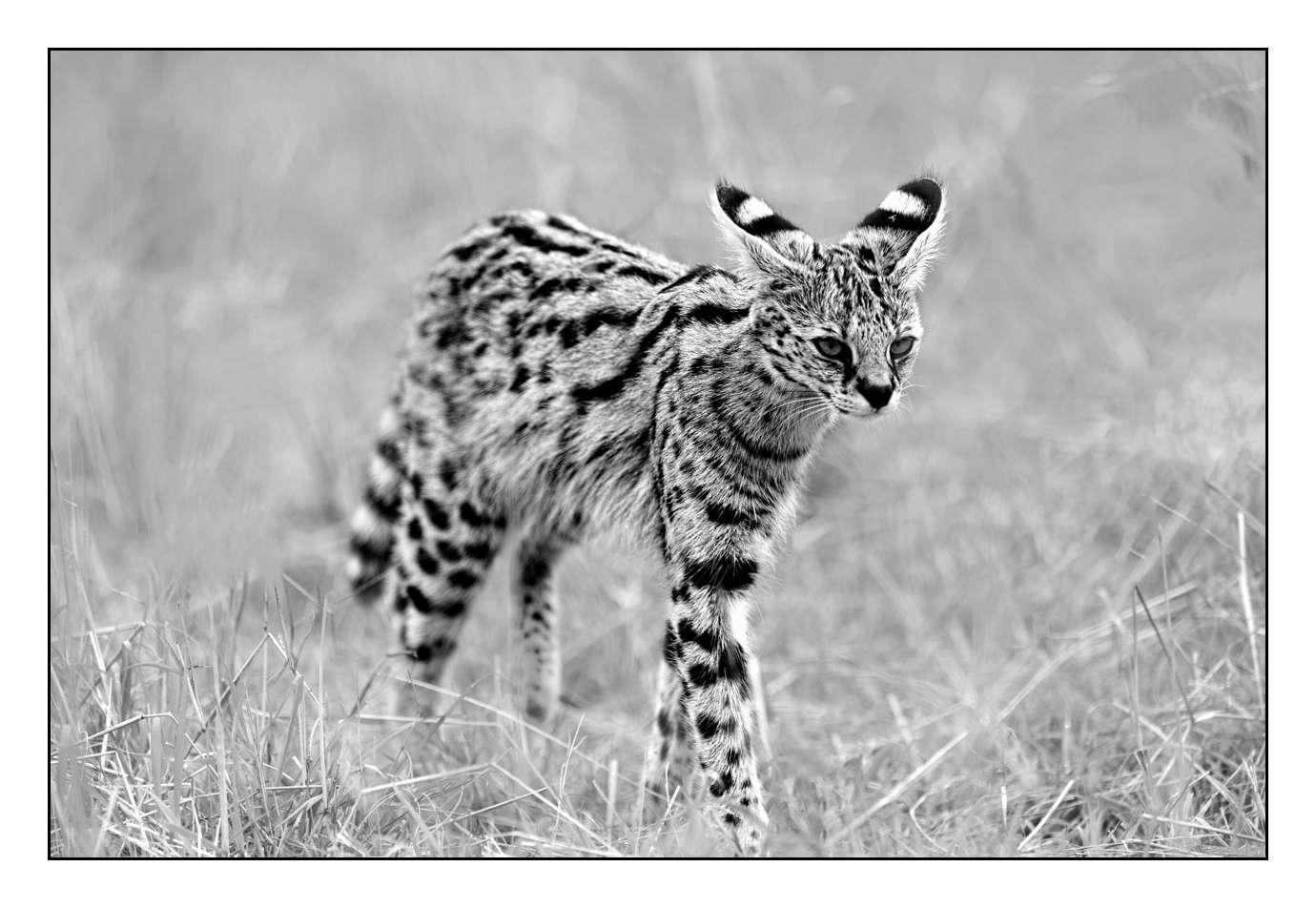 Serval Cat I: Museum Finish Dim in inches - Photo: 15 x 10. With frame: 16.2 x 11.2. / Dim in cm - Photo: 38 x 25.4. With frame: 41.5 x 28.5.