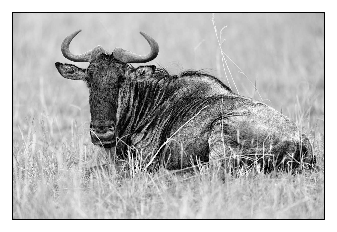 Wildebeest I: Museum Finish Dim in inches - Photo: 24 x 16. With frame: 25.2 x 17.2. / Dim in Cm - Photo: 61 x 41. With frame: 64 x 44.