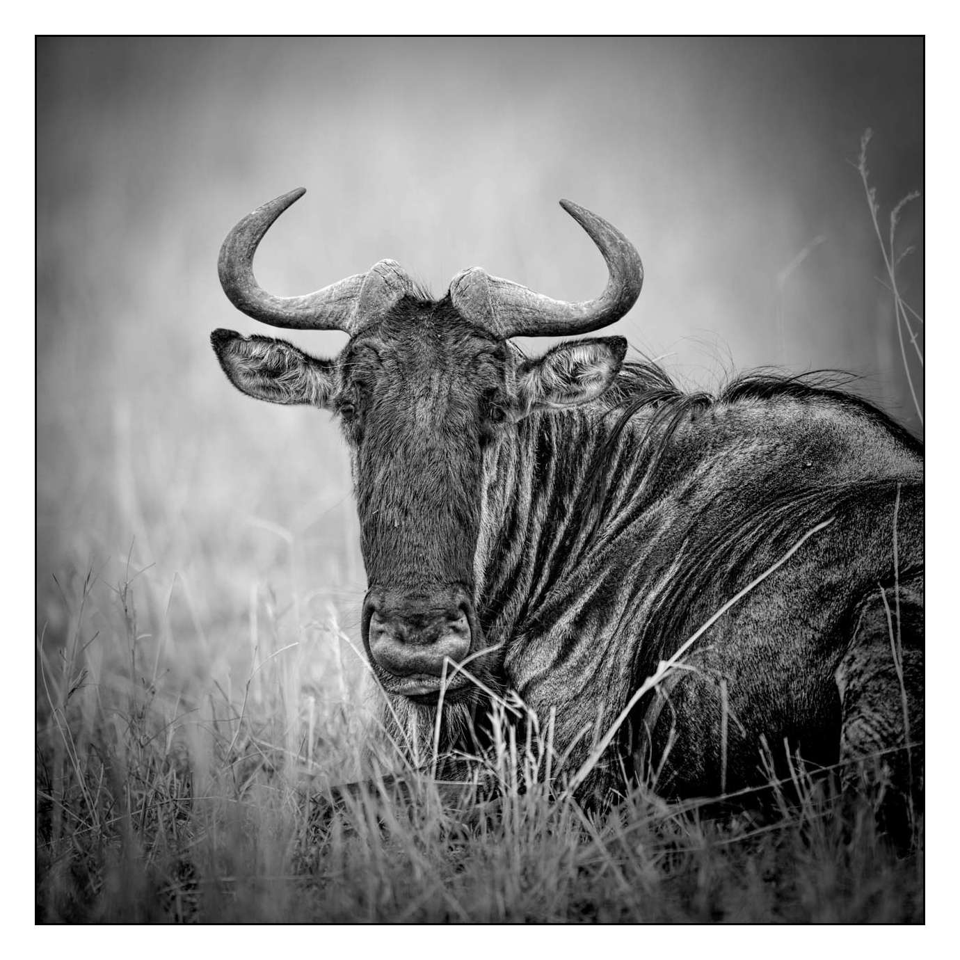 Wildebeest III: Museum Finish Dim in inches - photo: 10 x 10. With frame: 11.2 x 11.2 / Dim in cm - photo: 25.4 x 25.4. With frame: 28.5 x 28.5.