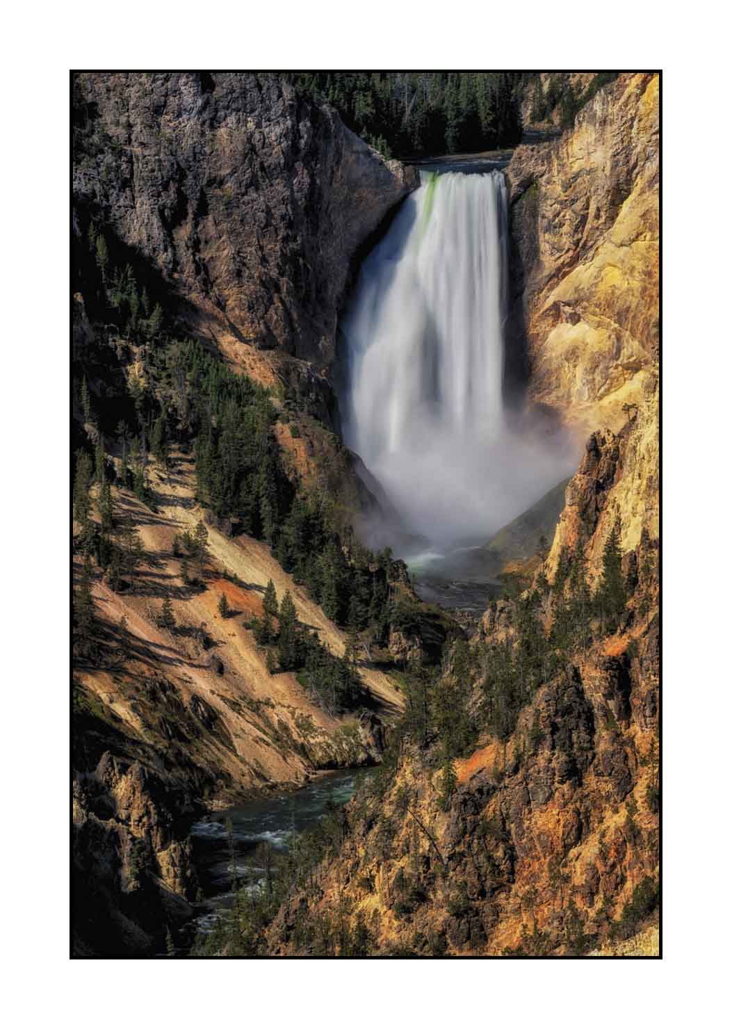 Yellowstone XXXVII - Grand Canyon of the Yellowstone and Lower Falls: Museum Finish Dim in inches - Photo: 15 x 10. With frame: 16.2 x 11.2. / Dim in cm - Photo: 38 x 25.4. With frame: 41.5 x 28.5.