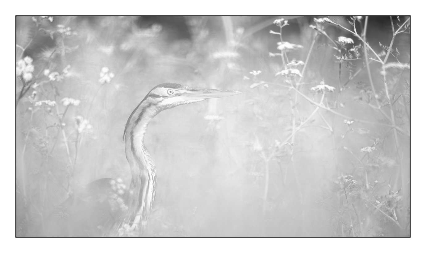 Héron pourpré XVII: Finition museum Photo : 63cm x 36cm. Avec cadre : 76cm x 49cm.