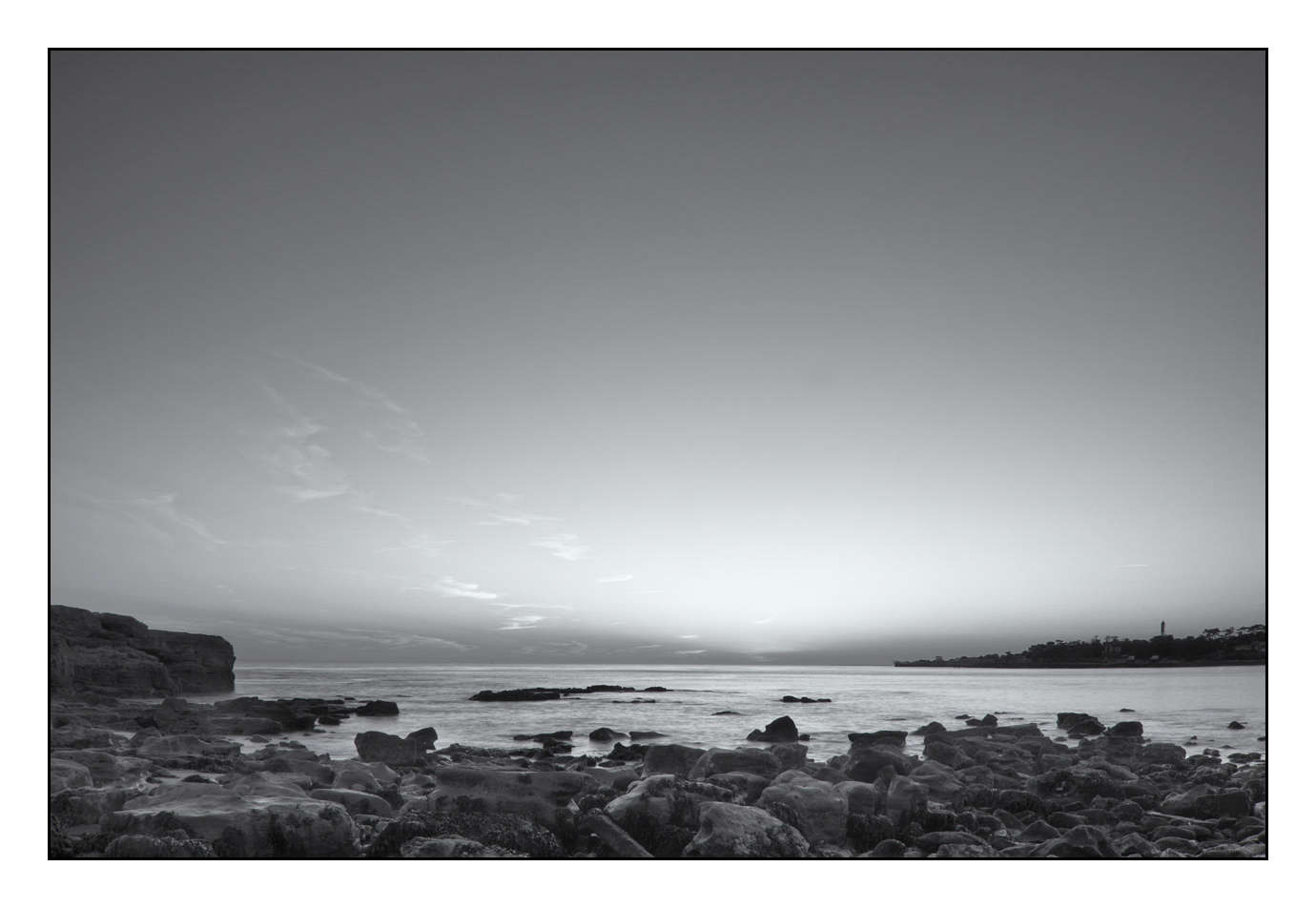 Infini en noir et blanc X - Côte de la Charente-Maritime en France: Finition contemporaine Photo : 60cm x 40cm. Avec cadre : 63cm x 43cm.