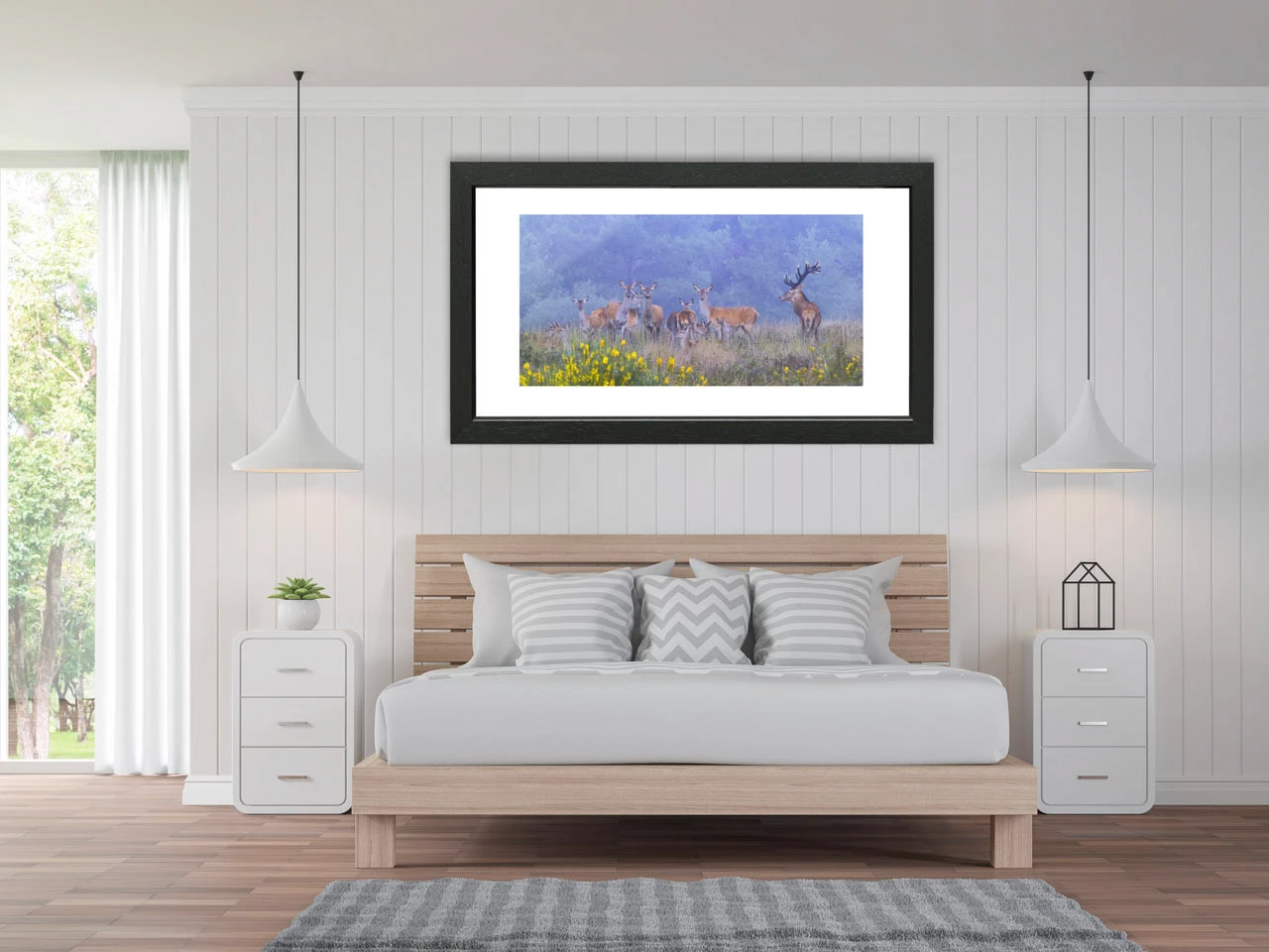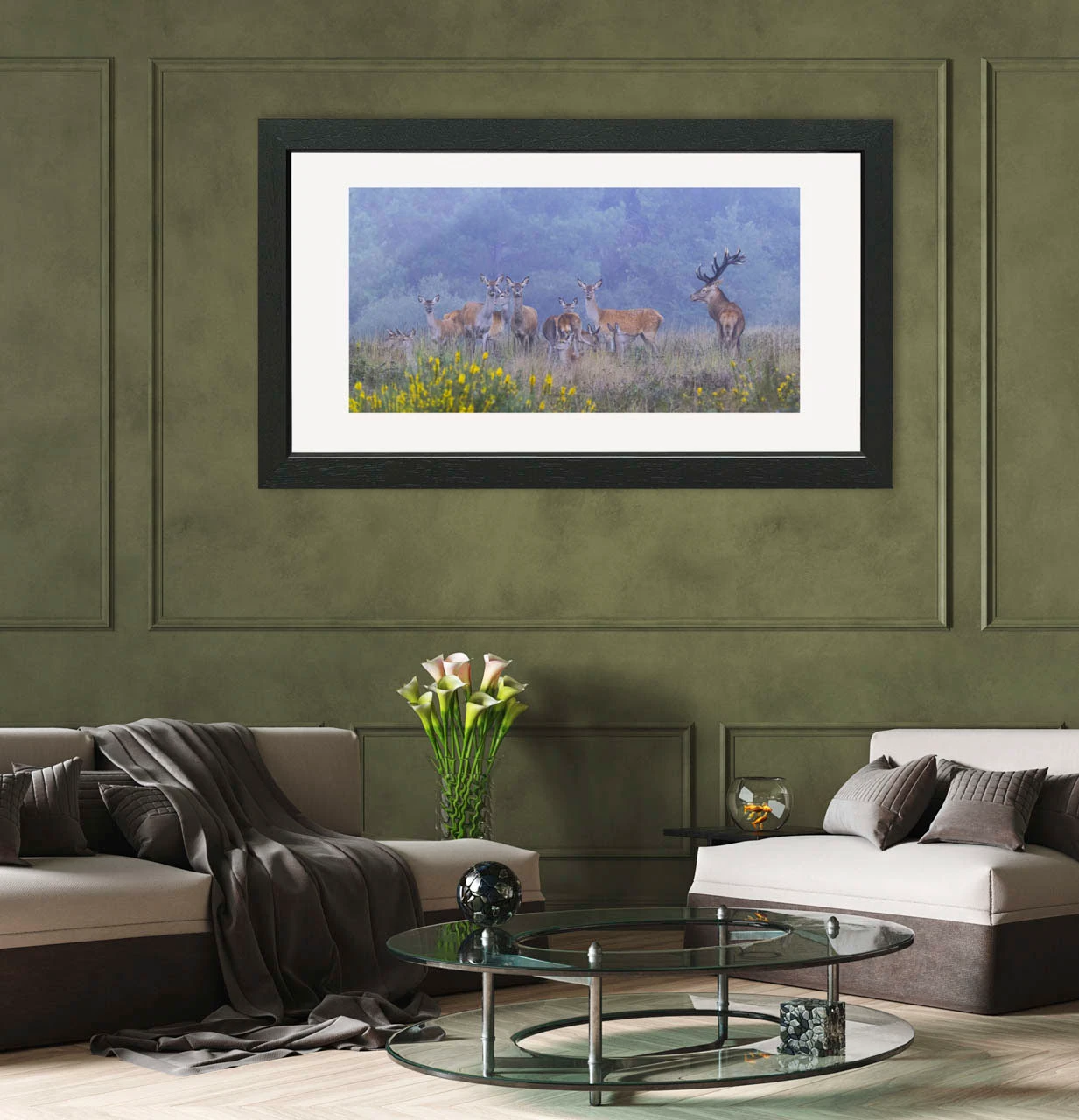 Les murmures du brame du cerf: Finition contemporaine Photo : 86cm x 43cm. Avec cadre : 105cm x 59cm.