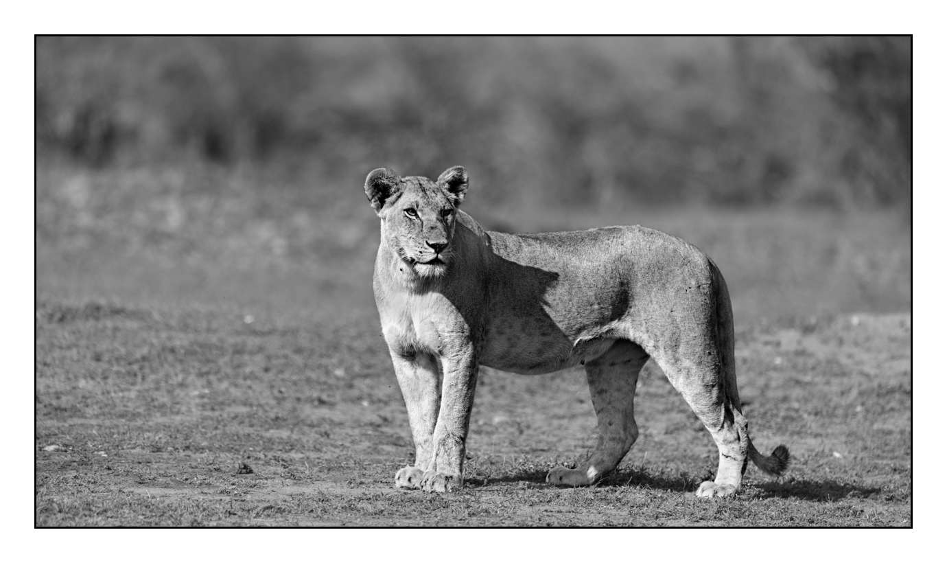 Lion V: Finition contemporaine Photo : 48cm x 27cm. Avec cadre : 61cm x 40cm.