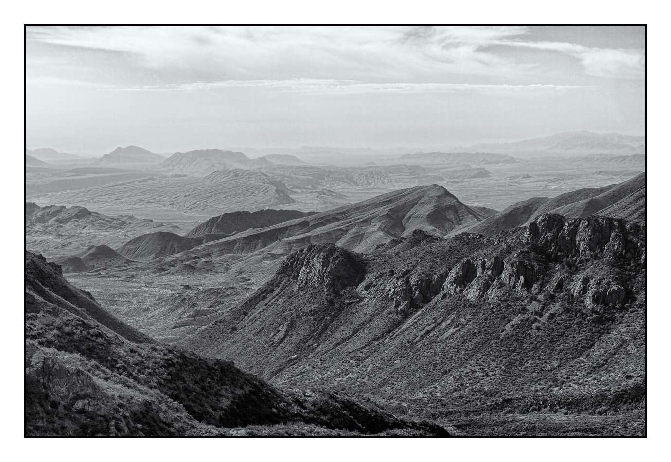 Big Bend est éloigné de tout. C'est une zone protégée très peu visitée car les températures sont très élevées durant l'été et très froides pendant l'hiver. C'est une région très sauvage qui est exactement à l'image du Texas : « Tout est grand ». Les paysages minéraux sont tout aussi impressionnants que les zones traversées par le Rio Grande.
