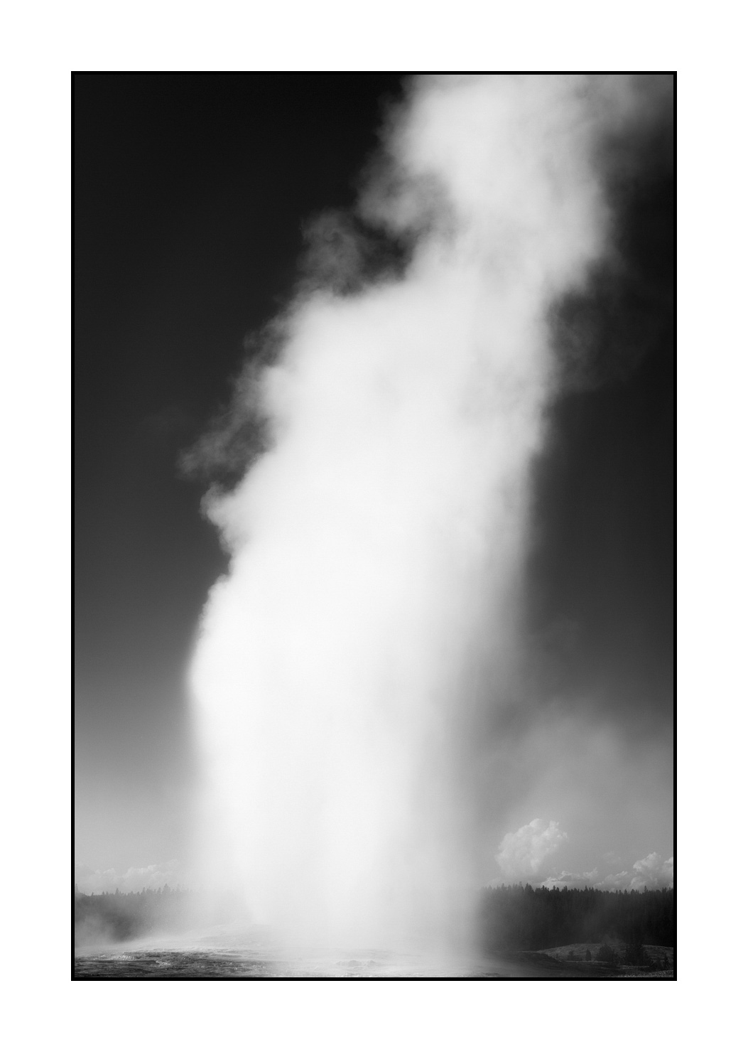 Paysage du Yellowstone dans le Wyoming en noir et blanc XXVIII. Le geyser de Old Faithful.