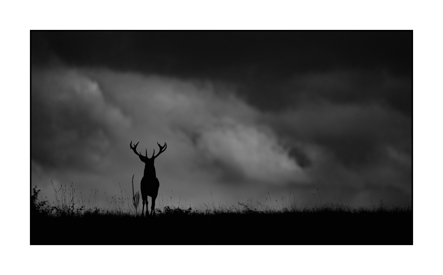 Silhouette d'un cerf en noir et blanc IX: Finition museum Photo : 37cm x 21cm. Avec cadre : 48cm x 32cm.