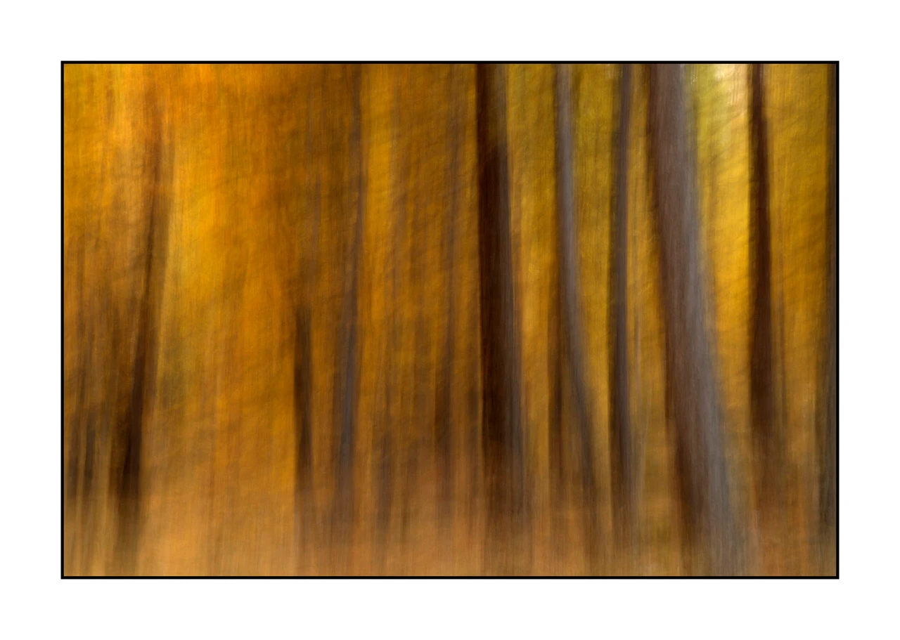 Souffle d'automne dans la forêt de mélèzes dans la vallée de la Clarée XIII: Finition contemporaine Photo : 60cm x 40cm. Avec cadre : 63cm x 43cm.